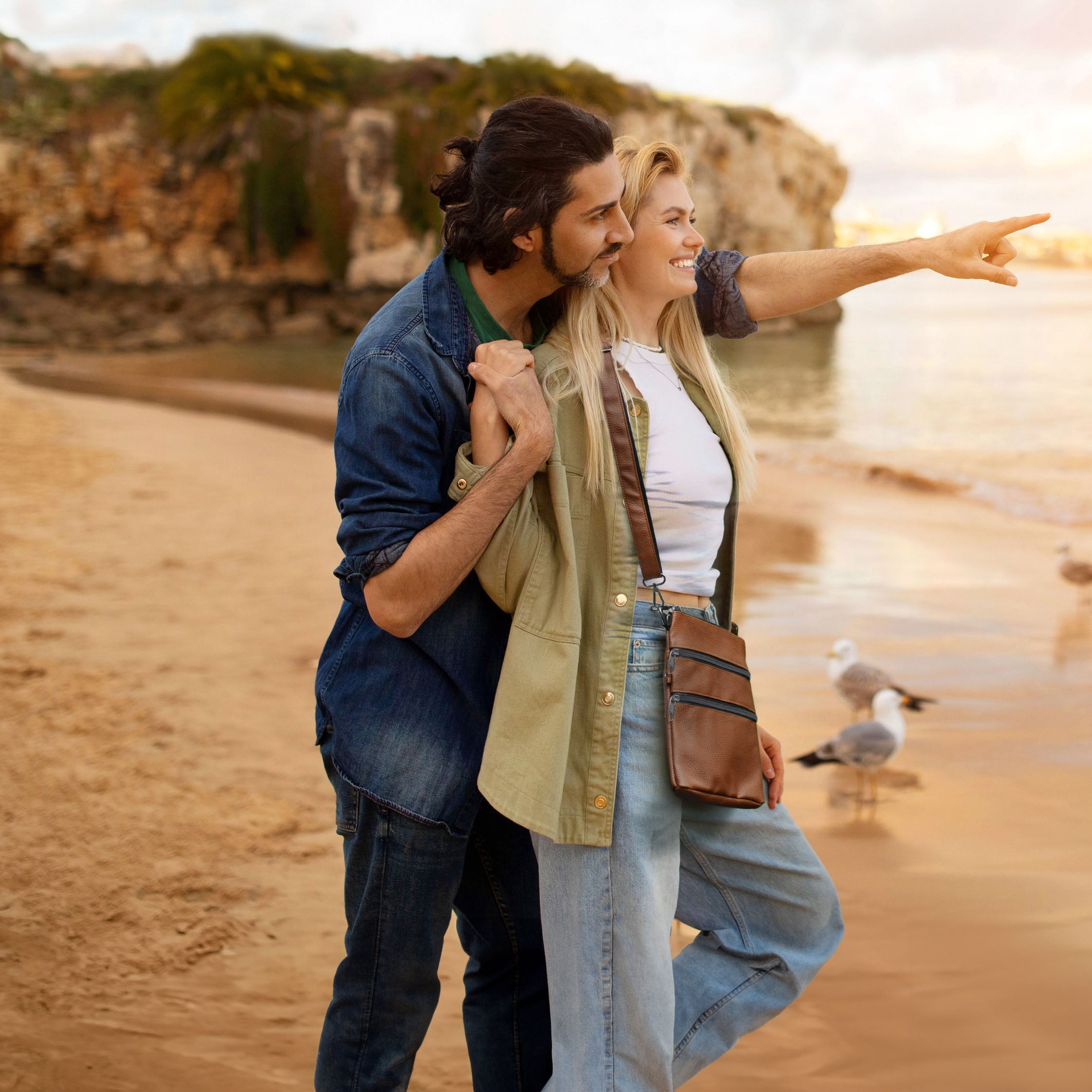 3-zipper adjustable sling bag offers plenty of space to organize your valuables. Stylish and sleek silhouette will enhance any wardrobe. The adjustable strap allows you to create the perfect fit.